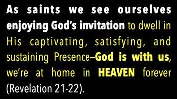 Then, and this is what really buzzed the Early Church. They couldn't wait for this: to dwell in the house of the Lord forever. Nero had a house during this time period that was acres and acres. Bill Gates, and I don't know who, has a big house these days. Gates does have a large one, but nothing compares to the size of Nero's house. It was acres. He had a lake inside his house where boats could fight battles, and galleys could fight. It was in the courtyard of his house. So, everyone knew they'll never have a house like that till now, till they dwell in the house of the Lord. So, as Saints in chapters 21 and 22, we see ourselves enjoying God's invitation. We dwell in His captivating, satisfying, sustaining presence. God is with us, and we're at home in Heaven forever.