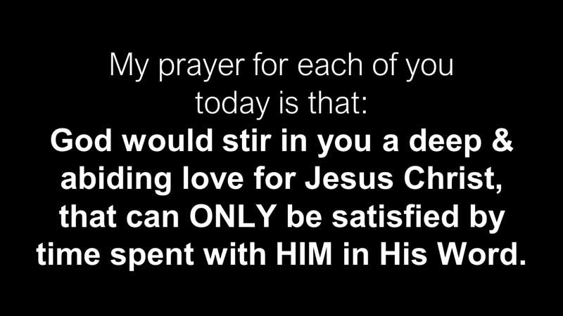 Okay. Now, I'm going to pray, and I even wrote down my prayer. It's in your notes. My prayer for every one of you is that God, and only He can do this, would stir inside of you, a theme in the Bible, the love for Jesus Christ. Look at this, that can only be satisfied by understanding Him in His Word. Remember I was saying that, if I was dating Bonnie, that I wouldn't be looking, watching, and wooing all the girls in the bar. I guess they don't woo the girls anymore. Boys don't flirt with the girls, do they?