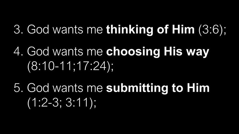 - Number three, God wants me thinking of Him. That's what Proverbs 3:6 says. Basically, "in all your ways acknowledge Him and He shall direct your paths." What that means is, look up from your slides for a second. Do you know what that means? Treat God like your phone. What does that mean? Do you know where your phone is right now? As soon as you get it, you look and see if it's got service, you're constantly monitoring whether or not it has enough power so that it'll keep working. Most people sleep with their phones. It's just become something they can't get along without. You know what God said in His word? I want you to be thinking about me as much as you think about whatever's important to you, like your phone.