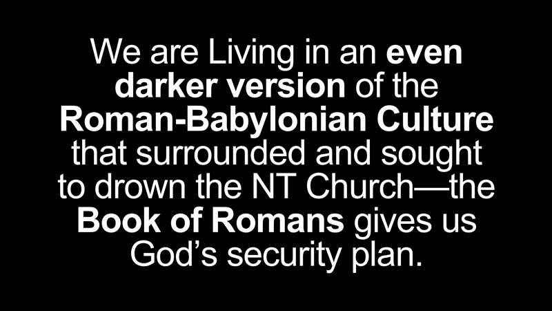 How do we do this? How do we unleash the book of Romans? Well, we're living in an even darker version of the Roman Babylonian culture. And they say, how do you get that? Well, Rome is what God says is the empire that the New Testament was written under and that the world ends under. It's the revived Roman Empire. So, we're living in a Roman Babylonian. Remember, Revelation 17 says that the final system religiously, which is culturally and economically is Babylonian. So, what surrounded and sought to drown the New Testament Church is the same culture that we live in today, only it's a darker version, and the book of Romans was God's security plan.