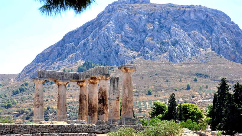So, what I'm showing my students, and I'm going to share with you, this is the Akrokorinthos up here. All of this surrounding this Temple of Apollo here is the city of Rome, and that Temple of Apollo was what Paul was sitting in the shadow of the Temple of Apollo as he sat in Corinth writing this epistle. You said, how do you know he was in Corinth? That's why you need a study Bible. This study Bible takes all the consensus of conservative, evangelical theology and archeology and history, all the studies, all the disciplines of all the seminaries, and distills it down into 25,000 notes. There's almost one note for every verse of the Bible. There are 31,103 verses and over 25,000 notes in this study Bible. It's the bottom third to half of every page with all kinds of charts. So, if you look up Romans in the author and date section, it doesn't give the liberal view. You know what the liberal view is? That Paul didn't write his epistles.