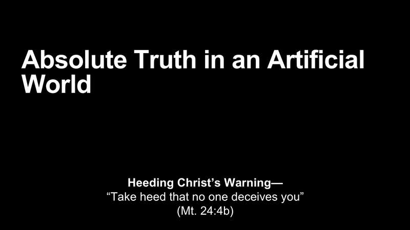 So, this is what I want to challenge you with. We need to, as believers today, believe in absolute truth as we live in an artificial world. For this reason, Jesus said, make sure, be sure, take heed that no one deceives you. Now here's, and you all know this is what I've shared with you over and over again, I hope it never gets old to you. But let me give you the history of the future, the one that's in the Bible, okay? And this is what it is.
