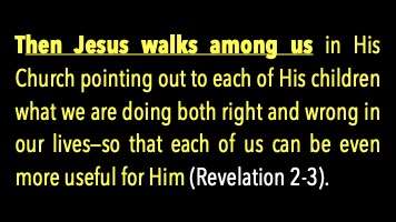 Secondly, chapters 2 and 3 are Jesus walks among us in His Church, pointing out to each of His children what we're doing both right and wrong, so we can be even more useful to Him. And we're going to spend several class hours looking at that.