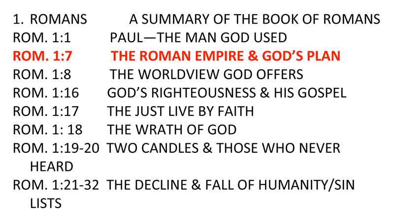 Now I'm going to keep these classes going and you're going to see the background is going to be changing. I'm probably going to put up that picture of Corinth and the Temple of Apollo in the background. But stick with Romans 1 this week, all week long. Read all the footnotes, find all the lessons. You can write your prayer. In fact, some of you, sometimes I've written a new application summary and prayer for every day. Either you can work on it all week or do it every day. But this week I challenge you, make it your Romans 1 week. And you just heard my application prayer. Come to a point where you say, use me, help me to share the Gospel, I want to be your servant. And that will be the essence of what Christ's left you here on Earth to do. That's being his bond servant and that's what we're studying and that's why we're having this study, and that's why I'm loving going through each of these chapters.