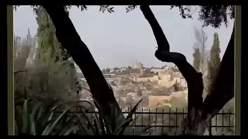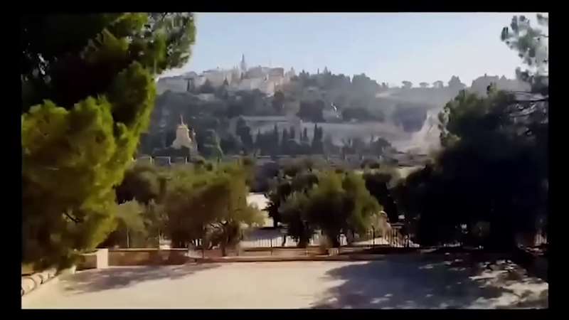 By the way, this is the Church of the Ascension. This is the Mount of Olives. This is the temple mount. We're standing up by the Dome of the Rock. They led us up there, Bonnie and I, the last time we were there. Looking over where Jesus wept, Dominus Flevit, this is the Russian Orthodox Church of Gethsemane where Jesus prayed. This is where Jesus stood with the disciples, somewhere up here on top of the Mount of Olives. And while He had His arms out blessing them, He ascended to Heaven, right there. Isn't that fun to see that?