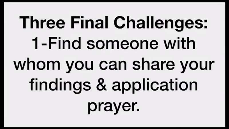 Just quickly, my last three challenges, find someone you can share your findings with. Now, look up for a second. I just got a note from a fellow this morning. I was going somewhere and I got a message; I don't remember where I was but I got a message. I looked down and it was a message from someone on YouTube, and they said this. They said, in your video this morning you said that we are to find a local church. I am in Australia. In my part of Australia, there are no local churches. I live in such a small town there's no local church. I so rarely ever answer any comment. I get hundreds of those kind of comments every day on YouTube. But for some reason, I was sitting there, I had a minute, it popped up and creator studio had a little box that said do you want to respond to this person? I said, yes. And I hit, yes. And you know what I wrote to him? What I just read to you. I said, if there really is no local church in your part of Australia, where you live, I said, if you know any other Christian in the entire town you ought to say to them, I am involved in a study and I would like to share what I'm writing in my journal, what I'm finding in the Bible with you. And if there's no other Christian in your town, then I said, why don't you ask God to let you lead someone to Christ and then disciple them. Instead of lamenting, I have nowhere to go to church. I don't have a good church. We were left here and all of us, look at this, God has a unique plan for each of our lives. That person, His plan is they live in a remote part of Australia. Gospel sharing is part of God's plan for every one of us. For me, when I'm at the car repair shop, or on an airplane, or standing in some part of the world teaching students, that's God's plan for me. His plan for you is the same. He made you unique. He wants you to share the Gospel. We're supposed to live like we're under the constant shower of blessing of Jesus saying, hey, I picked you. I chose you. I died in your place. I took all your sins. I want you to have endless hope. I want you living in hope. And we should be asking God to prompt us by His Holy Spirit to have that shared passion.