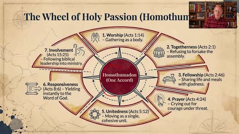 4. Homothumadon: The Holy Passion of the Church (Acts 1:12-14) As the disciples returned to the Upper Room, their very first activity was prayer. They were united by homothumadon—a Greek word meaning a shared, holy passion. You will be challenged to abandon isolation and allow the Holy Spirit to ignite a desperate passion within you for prayer, deep fellowship, and cohesive worship alongside other believers.