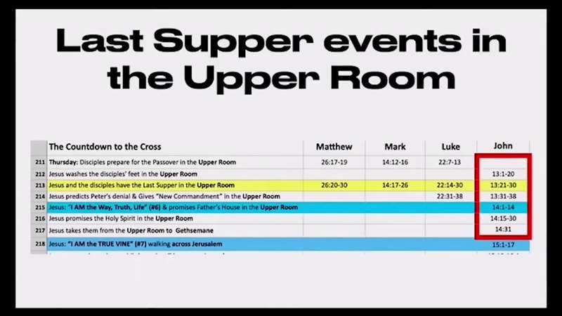 What did they do in the Upper Room? Do you remember what happened, that the Last Supper was in the Upper Room, they had the Passover. Jesus washed their feet up there. They celebrated communion. He gave them the New Commandment. He promised that the they were going to their Father's house because He was the Way, Truth, and Life. He promised the Holy Spirit. He walks to Gethsemane and told them about being the Vine.