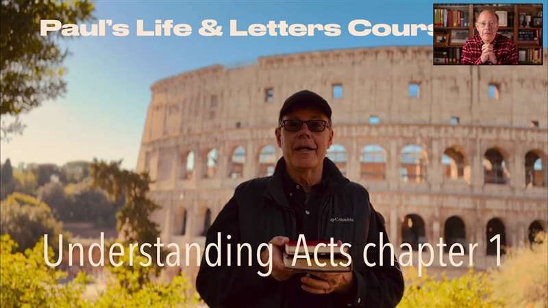 Okay, let's go to the slides and I'm going to begin. Paul's Life and Letter course. Were on number seven. There are six prior introductory courses. I talked to you about the Roman Empire. I talked to you about the life of Paul. But look what we're doing today and this is why I'm so excited, understanding Acts chapter 1. Now I'm standing there, notice there's my study bible and my journal right there in my hands. What's this? Yeah, that's the Flavian Amphitheater. You know what that is, right? Yeah, it's the Colosseum. Only, it was really the Flavian Amphitheater and it's just been popularized by tourists as the Colosseum. But that's the Colosseum. I'm in Rome teaching the book of Romans, which you're going to get to in a little while. Okay.
