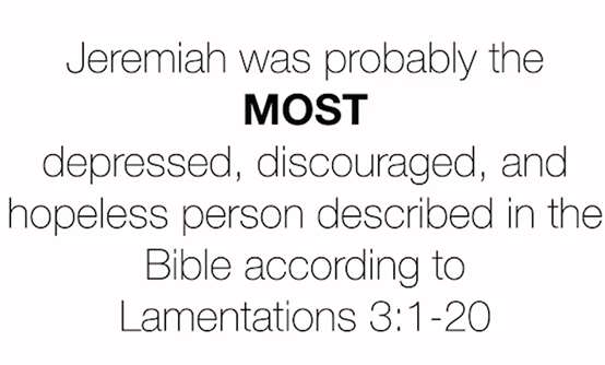 Now remember, Jeremiah was probably the most depressed, discouraged, hopeless person described in the Bible. If you want to read about that, it's very hard reading, but Lamentations 3 talks about the unimaginable woes he went through.