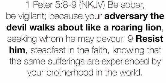 1 Peter 5:8 says, "Be sober, be vigilant; because your adversary the devil walks about like a roaring lion, seeking whom he made devour." " Resist him." How do you resist him? "Steadfast in the faith..." That is this shield of faith. The shield of faith is resisting him, resisting the devil in the face saying, I believe the word of God. The shield of faith is saying, I believe God. I resist you, Satan. Extinguish those flaming arrows he's shooting at me by your shield of faith. Satan will not have a place in my mind to cause me to doubt God, to question Him, to not submit to Him. That's the power of the sword of the Spirit, which is the word of God. The shield of faith, which is part of our armor against the devil.