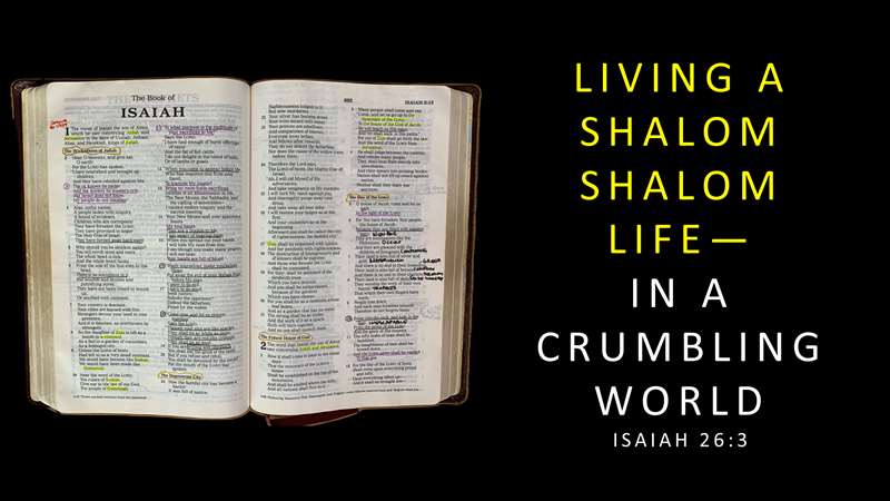 Look at this. Living a shalom, shalom life in a crumbling world. That's what the whole book of Isaiah is about. And Isaiah 26:3 shows us one of the most beautiful pictures. Let me read it to you. This is what Isaiah wrote, as the Assyrians were at the door, behind them the Babylonians were coming, the whole society was crumbling, everybody was scared to death, the religious leadership was corrupt, the political leadership was corrupt, and this is what it says, "In that day this song will be sung in the land of Judah."