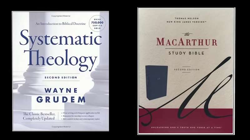 This is a picture of Wayne Grudem's Systematic Theology right here and this is the MacArthur Study Bible.